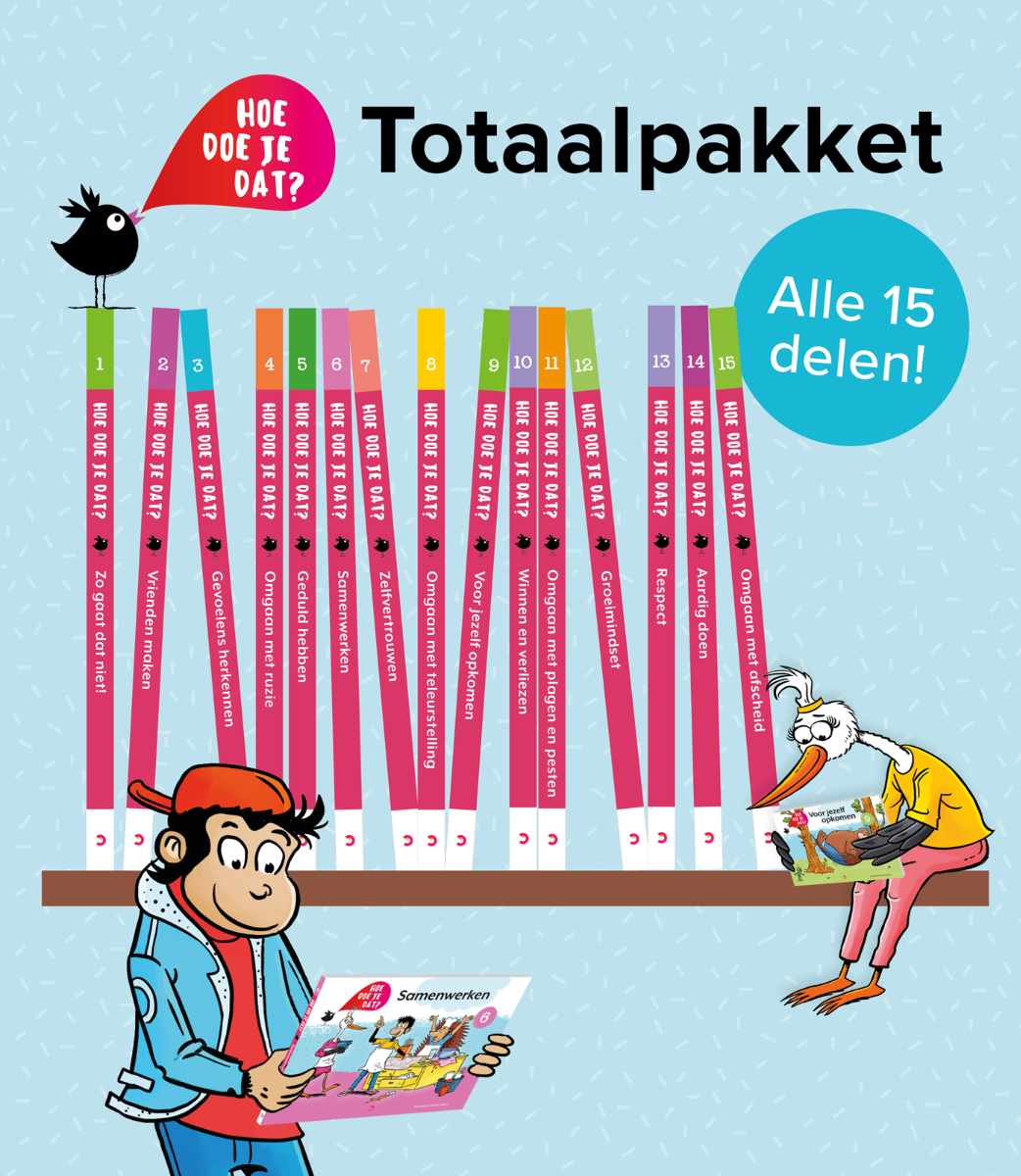 In deze prentenboekenserie verkennen kinderen in de onderbouw, samen met de leerkracht, concrete (gedrags)situaties. Ideaal voor scholen die sociaal-emotioneel leren vanaf de eerste schooldag goed op de kaart willen zetten. In elk deel staat een herkenbaar onderwerp uit het leven van kleuters centraal. Dit biedt de leerkracht de kans om hier dieper op in te gaan. Situaties worden vanuit verschillende invalshoeken behandeld. Hoe doe je dat? is daarmee heel geschikt als aanvulling op een SEL-methode, zoals Kwink.
