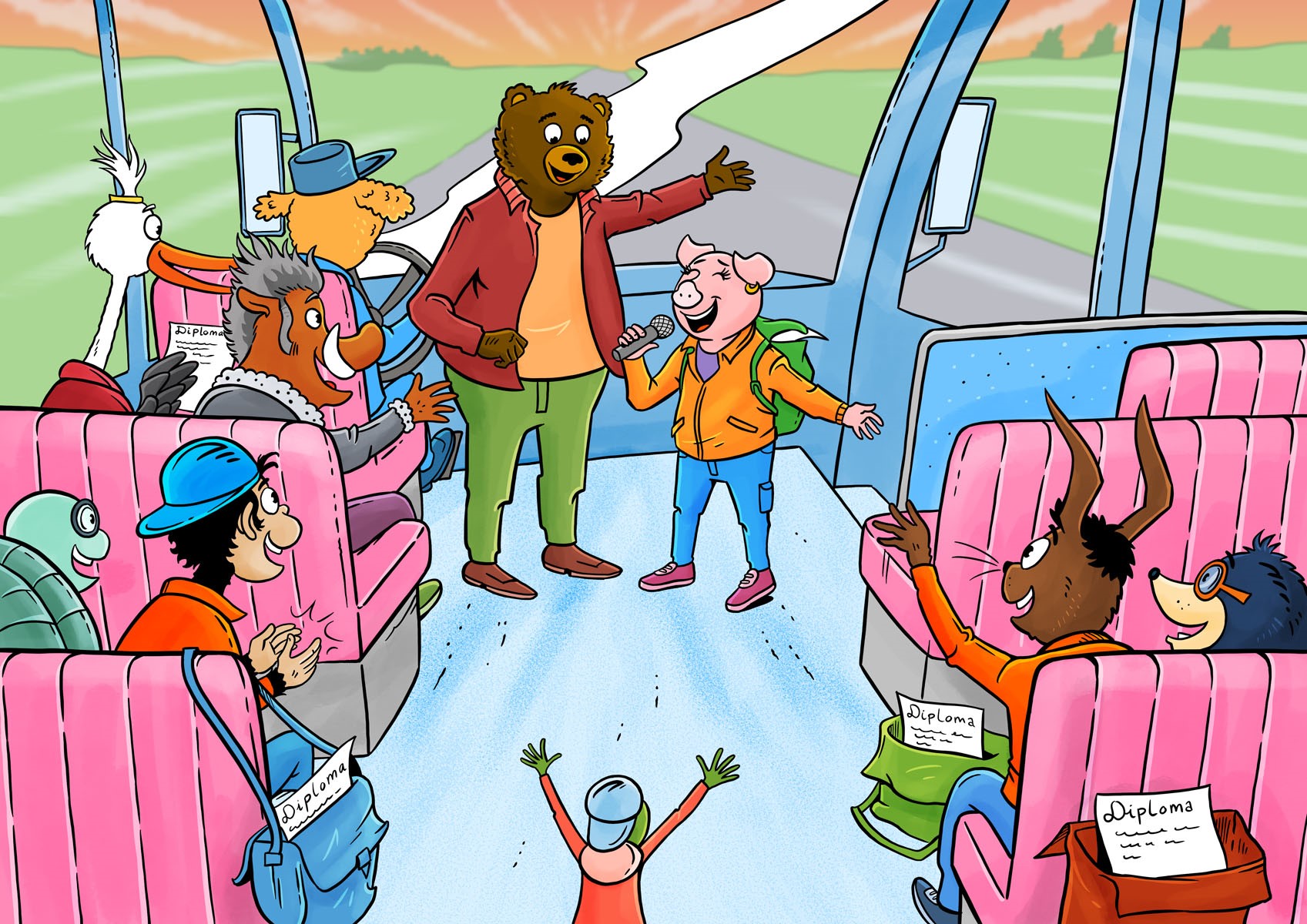 In dit verhaal gaat Varken op schoolreis en dat vindt ze een beetje spannend. Durft ze het om zomaar naast iemand in de bus te gaan zitten die ze niet kent? En durft ze een liedje te zingen voor alle anderen? Met behulp van Arie krijgt ze meer zelfvertrouwen en maken ze er een spetterende dag van!